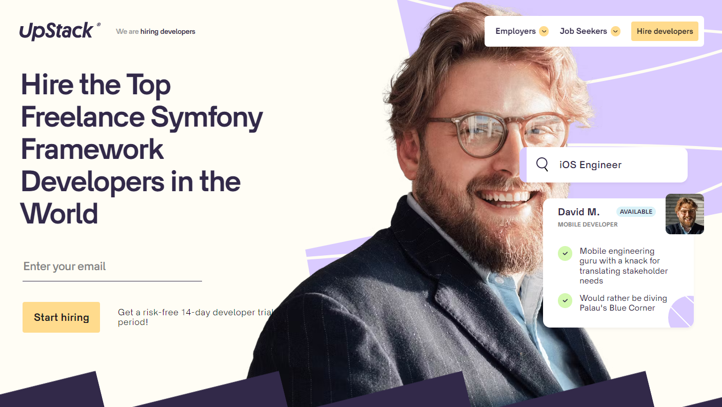 Upstack is a platform for hiring freelance engineers. With a 14-day free trial, it employs an 8-step screening process to ensure skilled and experienced developers. You are assigned a dedicated representative who guides you through the hiring process. Utilizing AI, Upstack matches you with the best PhoneGap developers for your cross-platform mobile app projects.