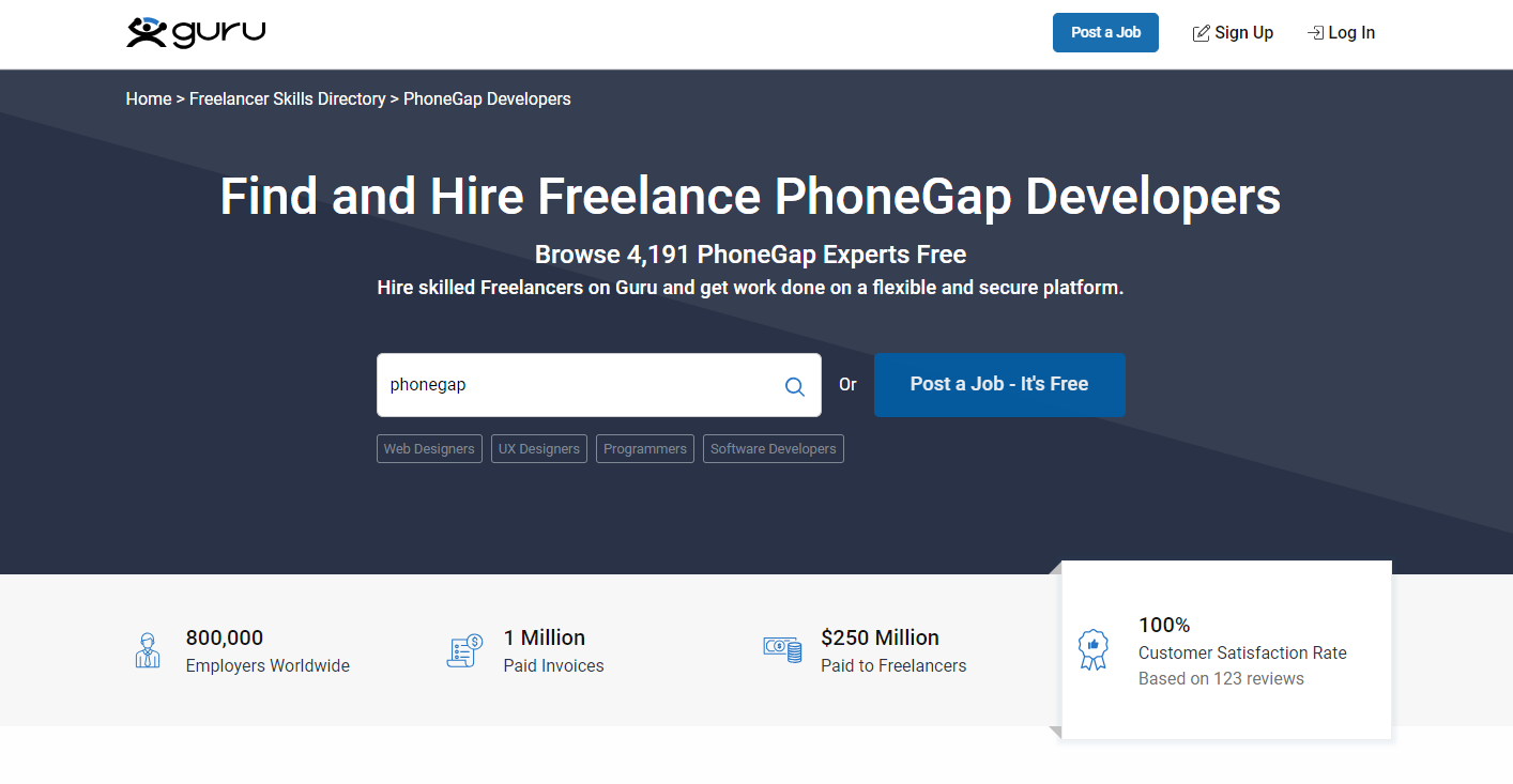 5. Guru.com – Where Skills Meet Projects: Hire PhoneGap Developers with Confidence