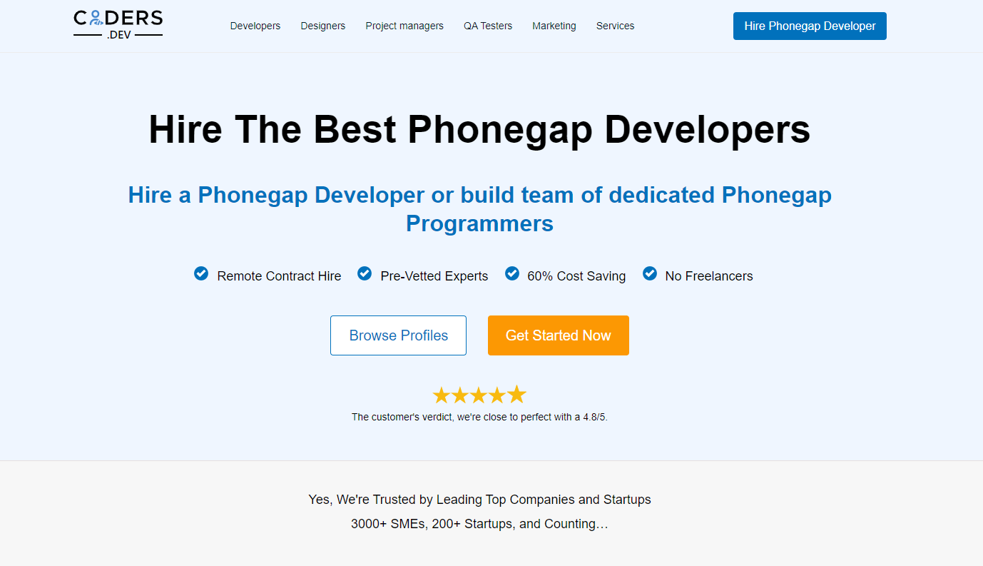 8. Coders.dev – Smart Connections, Ideal Developers for PhoneGap Projects