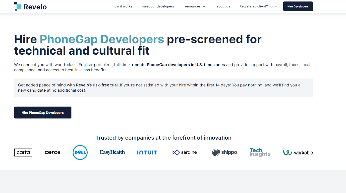 Dedicateddevelopers.com has partnered with over 60 organizations, including Ontraport, Walmart, and Dell. If you seek PhoneGap developers, they can assist in hiring skilled professionals experienced in cross-platform mobile app development with expertise in PhoneGap and related frameworks.