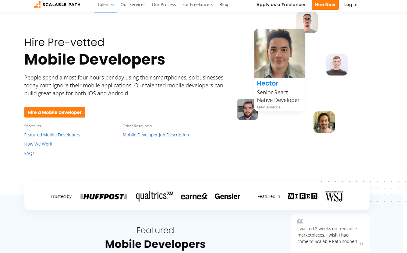 Scalable Path is a freelancer platform offering scalability for development projects, similar to Gigster. While pricier than Arc.dev, it’s suitable for complex projects or those lacking development expertise. Despite being smaller, it excels in customer service. However, its scalability for large enterprises is unclear. Ideal for small to medium-sized projects, Scalable Path helps find and hire PhoneGap developers skilled in cross-platform mobile app development.