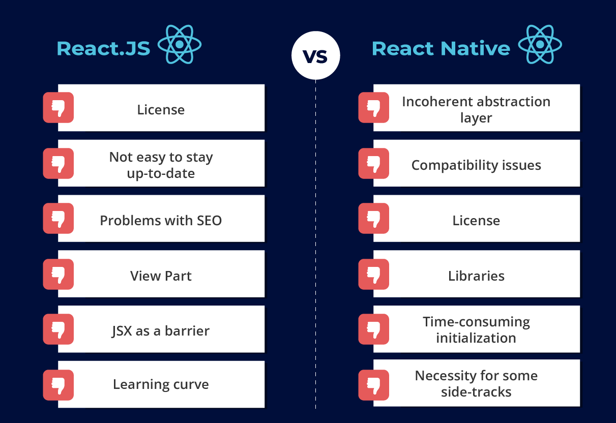 React Native performance may not be as fast as that of native applications, especially for complex and data-heavy applications. This is because React Native applications use a JavaScript interpreter to render the UI, which can lead to performance bottlenecks.