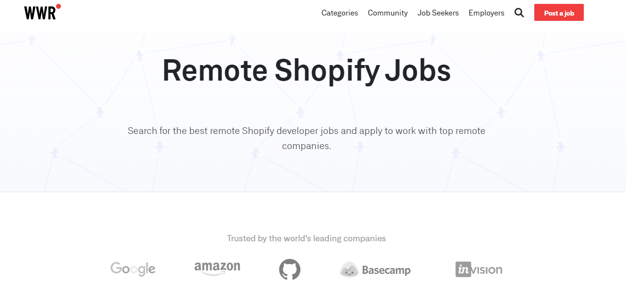 Since 2011, We Work Remotely has facilitated a swift recruitment process for recruiters seeking to hire Shopify developers. As a sizable remote work community, it simplifies job posting and delivers batches of skilled talents. With established ATS integration by partner companies, posting jobs on partner sites ensures redistribution to We Work Remotely. The platform provides options to hire Shopify developers for full-time or contract roles, along with other tech professionals like software engineers, full-stack developers, and data engineers.