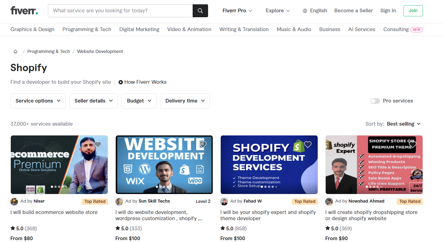 3. Fiverr – Business Connections with Skilled Freelancers for Shopify Development