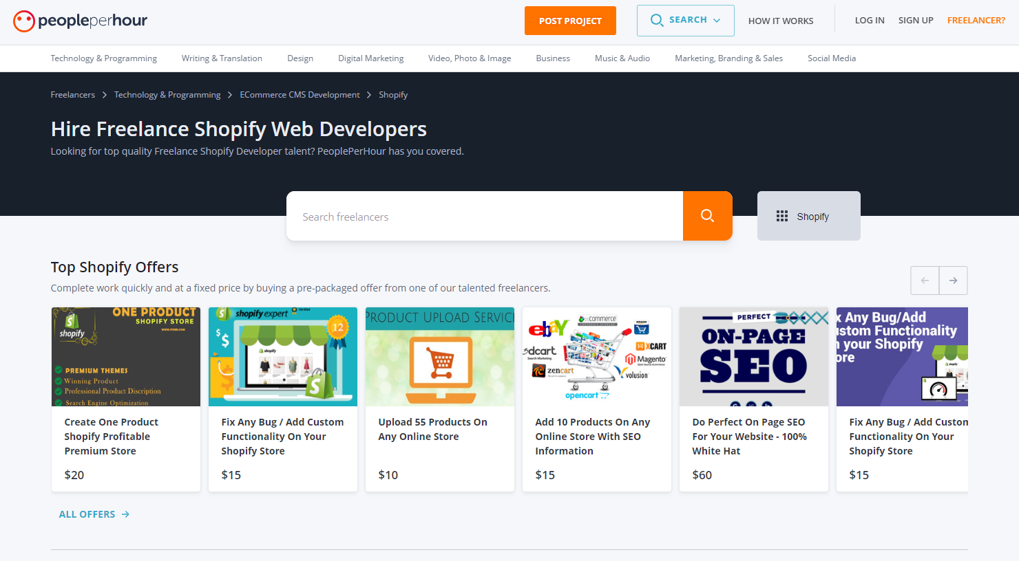 6. Peopleperhour – Highly Skilled Shopify Developers at Affordable Hourly Rates