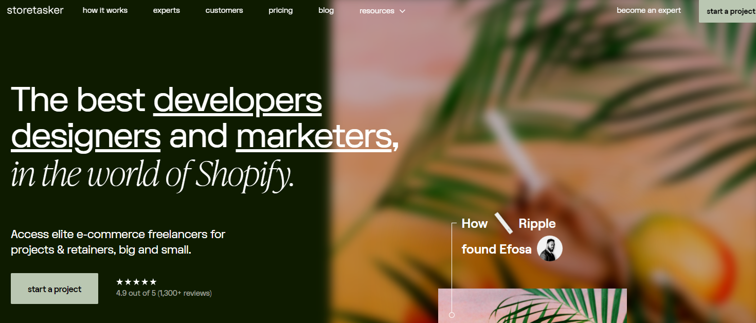 For businesses ranging from small merchants to large corporations, StoreTasker is a reliable choice for those looking to hire skilled Shopify developers. StoreTasker carefully vets thousands of developers, selecting only the top 5 percent to join their network. Their Shopify developers possess a wealth of experience and a blend of both technical and soft skills, ensuring smooth project execution. Employing their Shopify developers comes at an affordable, project-based price. The process is simple: articulate your Shopify website needs, get matched with top-notch experts, receive a fair quote, make the payment, and kickstart your project.
