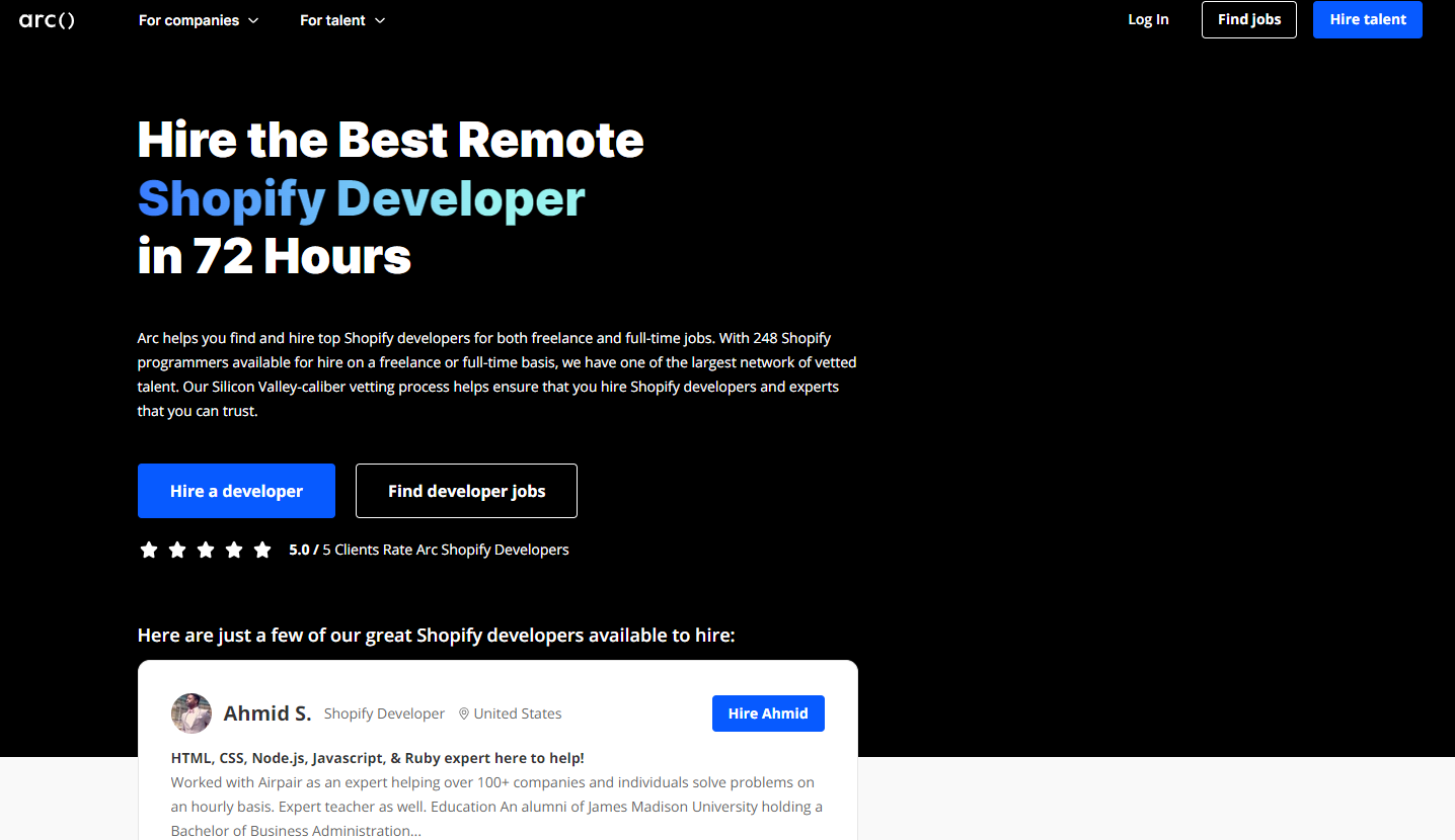 Toptal comprises an exclusive global network of premier freelance software developers, designers, finance experts, and project managers. Trusted by leading companies, Toptal freelancers tackle critical projects that require external expertise. A standout benefit is access to the top 3% of freelancers who undergo a rigorous screening process. This ensures clients receive high-quality talent, as Toptal prioritizes skilled problem solvers with passion and drive. Toptal’s emphasis on expertise and collaboration ensures clients hire Shopify developers who excel in their domains.