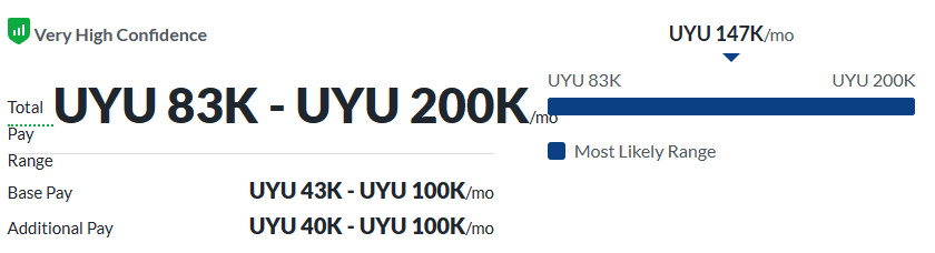 According to Payscale, the average gross salary for a web software developer in Uruguay is about UYU 1,911,581 per year, or UYU 919 per hour. This amount may vary depending on the specific data used and the additional components that are included in the salary, such as bonuses, overtime pay, or other benefits. The level of experience and skills of the web software developer also affects the hourly rate. For example, an early career web software developer with 1-4 years of experience may earn an average of UYU 46,000 per year, or UYU 22 per hour. On the other hand, a senior web software developer with more than 8 years of experience may earn an average of UYU 82,000 per year, or UYU 39 per hour. These figures illustrate the range of compensation that web software developers can expect in Uruguay based on their expertise and skills.